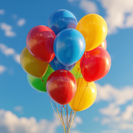 A bunch of vibrant red, yellow, blue, and green balloons float against a bright blue sky with soft clouds, creating a joyful and festive atmosphere perfect for celebrations or outdoor parties. Download this free AI Generated balloons, blue, celebration, and cheerful stock image by Image Maker (@ImageMaker).