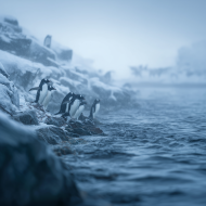 Thank @ImageMaker for sharing this free AI image, the easiest way is on social networks.Penguins Entering Icy Coastal Waters