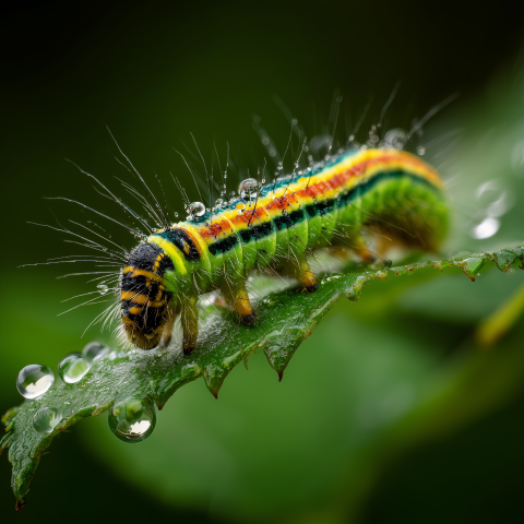Thank @ImageMaker for sharing this free AI image, the easiest way is on social networks.Colorful Caterpillar on Dewy Leaf