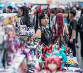 An anime convention is bustling with cosplayers, artists, and merchandise booths. Download this free AI Generated anime, artists, convention, and cosplay stock image by Image Maker (@ImageMaker).